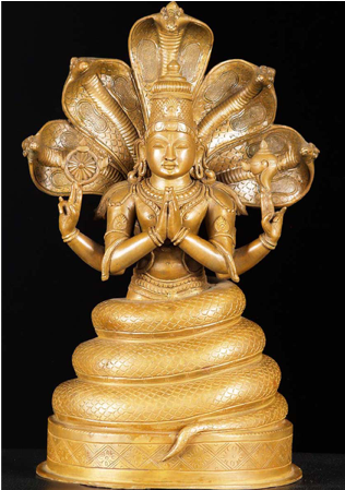 Inclinons-nous devant le plus noble des sages, Patañjali, qui nous donna le yoga pour apaiser et sanctifier le mental, la grammaire pour clarifier et purifier la parole, et la médecine pour nous maintenir en bonne santé. Prosternons-nous aux pieds de Patañjali, une incarnation d’Ādiśeṣa (Añanta), dont la partie supérieure du corps a forme humaine, tenant d’un bras une conque, de l’autre un disque, du troisième une épée de la sagesse pour vaincre l’ignorance et bénissant l’humanité du quatrième, et dont la partie inférieure est celle d’un serpent enroulé.